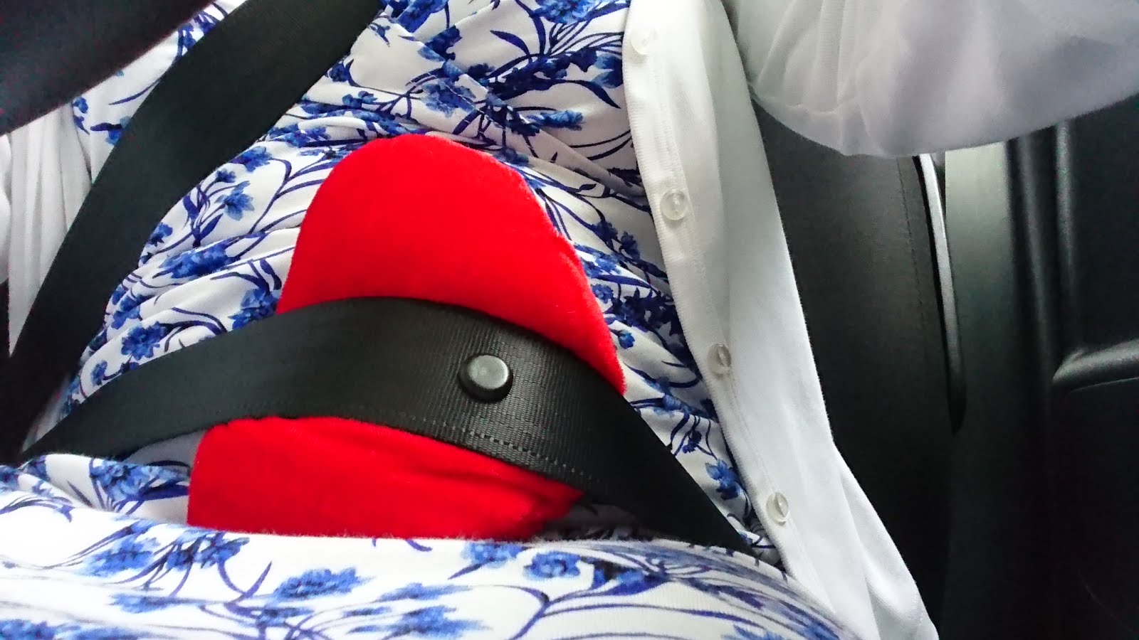 Geïnspireerd door alle wensen met (op)kikkers en harten onder riemen die mij per post waren toegestuurd, kreeg ik het idee om dat laatste letterlijk ter harte te nemen. En vanaf dat moment rijd ik er dus zo bij….