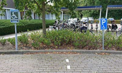 Nu ik wat langer aan het revalideren ben, kan ik er wel wat over schrijven. Ik heb dit bewust nog niet eerder gedaan, omdat ik het eerst een tijdje wilde volgen om er een beter beeld van te krijgen. Het meest intrigerende vind ik nog altijd de rij met parkeerplaatsen voor het revalidatiegebouw. De ene helft van de rij is bestemd voor gehandicapte chauffeurs -zoals het bord letterlijk weergeeft- en de andere helft voor invaliden. Hilarisch… ’t is maar net hoe je ’t ziet en ik moet toegeven dat ik er even over moest nadenken voordat ik ‘m begreep.