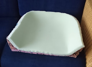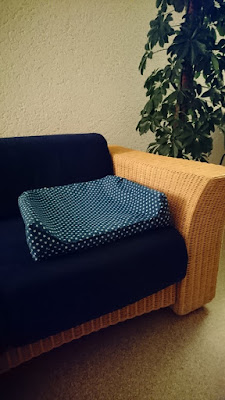 Of toch maar niet. Ik heb volgens mij al genoeg aan mezelf op dit moment. Terug naar het kussen. Dat werkt! Het zit precies goed, niet te hard – niet te zacht. Door de opstaande randen geeft het steun en zit ik als het ware in een soort mal, waardoor ik letterlijk niet kan uitdijen en mijn litteken niet de kans krijgt om uiteen te wijken. Een aangepaste speciale stoel zou helemaal mooi zijn natuurlijk, maar die worden niet meer zo makkelijk vergoed en ze zijn best prijzig om zomaar even aan te schaffen. Dit is een prima alternatief voor het zitten op zich. Ook al geeft het soms het gevoel alsof ik op een troon zit. Rechtop, want onderuitgezakt kan niet en dus ben ik altijd bij mezelf op visite… zo voelt het een beetje. Grinnik. In the meantime is mijn ergo wel bezig om de zorgverzekeraar uit te leggen/te onderbouwen waarom ik gebaat ben bij zo’n AFA (Aan Functie Aangepaste) stoel, niet te verwarren met een sta-op-stoel. Goed zitten is en zal voor mij een probleem blijven, een volledig herstel zit er immers niet in. Tenzij iemand bij Het Beste Idee Van Nederland rubberen bekkenbodemspieren op de markt introduceert, dan ga ik er meteen eentje bestellen. Oh nee, liever geen rubber in verband met mijn allergie. Gekheid. Voorlopig ben ik best blij met mijn kussentje. De afgelopen week heb ik ‘m weer ingeleverd en hebben ze ‘m afgemaakt en bekleed.