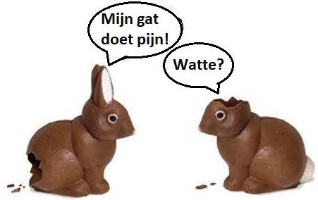 Nee hoor, geen Zoek De Zeven Verschillen, want: appeltje-(paas)eitje, die zijn zo gevonden -dus doe maar niet. Het is alweer Pasen…alsof de vorige keer gisteren was. Waar is een heel jaar gebleven? En wat is er allemaal gebeurd?! Ups, downs, nog meer downs en nu slowly weer up. Ik weet wel dat het geen zin heeft om steeds maar terug te kijken, wat geweest is is geweest. Het leven is Nu. En toch kijk ik zo af en toe nog even om, al was het alleen maar om me te realiseren hoe ik er op dit moment voor sta: letterlijk stevig in het hier en nu en met mijn beste beentje voor. Zat ik vorig jaar met Pasen in mijn laatste chemo/radiatie-dagen worstelend om aan te sterken en iets van voeding naar binnen te krijgen, zo zit ik deze Paasperiode in de laatste revalidatie-fysio dagen en heb “een aardig buffertje” weten op te bouwen.