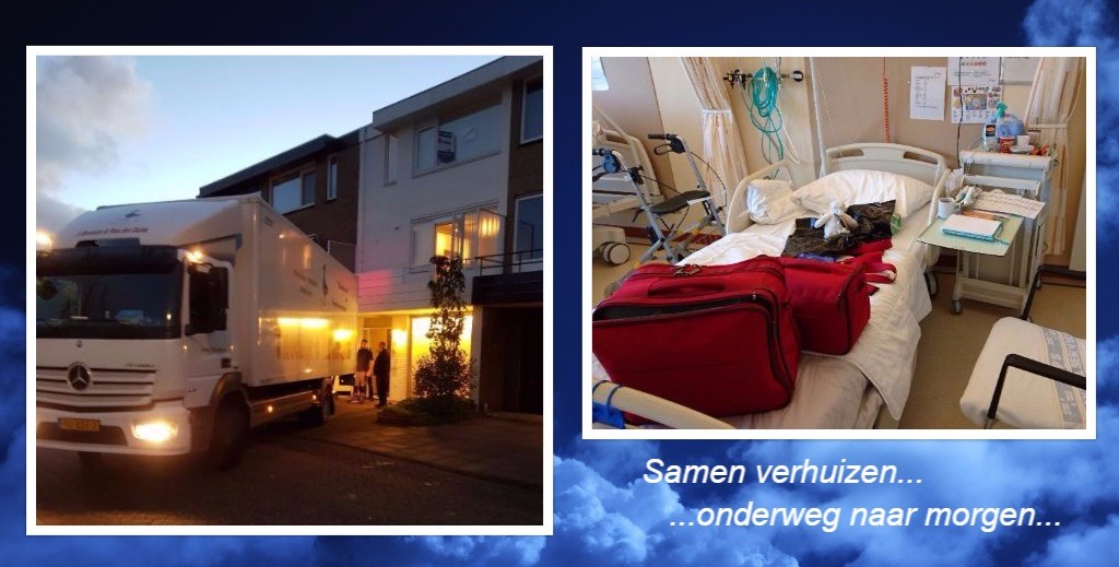 Het is haast niet te beschrijven wat er in me omgaat. Het lijkt wel een soort rouwverwerking, maar dan gelukkig zonder lijk. Ik voel momenteel weer al te goed hoe een ieder voor zich met een verlies, afscheid of hoe je ’t ook noemen wilt, omgaat. Bizar. Ik kan me alleen proberen in te denken hoe het voor Don met name fysiek voelt. Zelf voel ik iets anders. Don heeft naast zijn fulltime werk bergen verzet, nou ja: dozen, dozen en nog eens dozen…. daarnaast is hij steeds bij mij op ziekenbezoek geweest. Hij heeft mega-uren gedraaid, met de nodige kopzorgen erbij. Mijn beleving was anders, dat was meer een overleving. Ik heb onze thuissituatie van een afstand alleen maar via foto’s via de app kunnen volgen. Ook het inpakken ging tussen twee medicaties door telefonisch. Ja, die ladekast mag in de opslag. Nee niet die witte, die zwarte! die witte moet mee naar het vakantiehuisje. Soms kon ik niet meer helder denken, ik had al genoeg aan mijn lijf om er voor te zorgen dat mijn longorkest goed gedirigeerd werd. LOSLATEN was de enige optie om het voor mezelf allemaal te begrenzen.